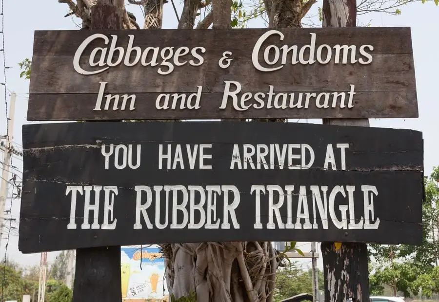 Talvez o mais estranho de tudo com este item seja a cabeça de cima. Pergunta: O que exatamente colhido e preservativo poderiam exatamente? E por que há um na tranquila vila do mercado de Bicester? Bem, de acordo com suas origens nessa cadeia de restaurantes, provenientes do presidente Mechai Viravaidya, que disse que poderia ir a uma loja na Tailândia, e você sempre o encontrará ... os preservativos devem ser como motoristas de táxi que são onipresentes e acessíveis a todos.
