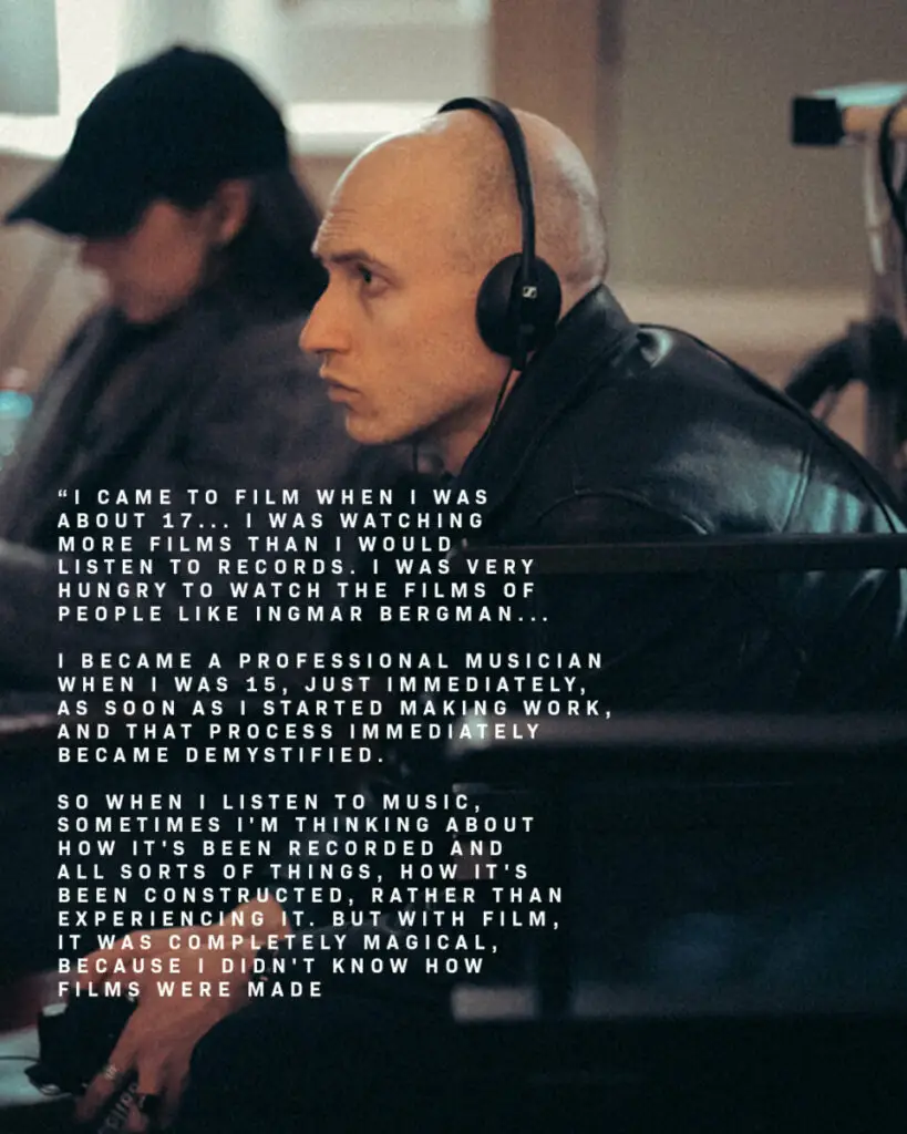 Quando eu tinha 17 anos, cheguei ao filme, ele disse. Descobri o cinema, e foi imediatamente: vi mais filmes quando pertencia aos álbuns ... Eu me tornei um músico profissional aos 15 anos de idade assim que comecei a trabalhar e esse processo foi imediatamente desmistificado. Então, quando ouço música, às vezes penso na maneira como ela foi gravada e em todos os tipos de coisas enquanto ela foi construída em vez de experimentar. Mas com o filme, foi completamente mágico porque eu não sabia como os filmes foram feitos.