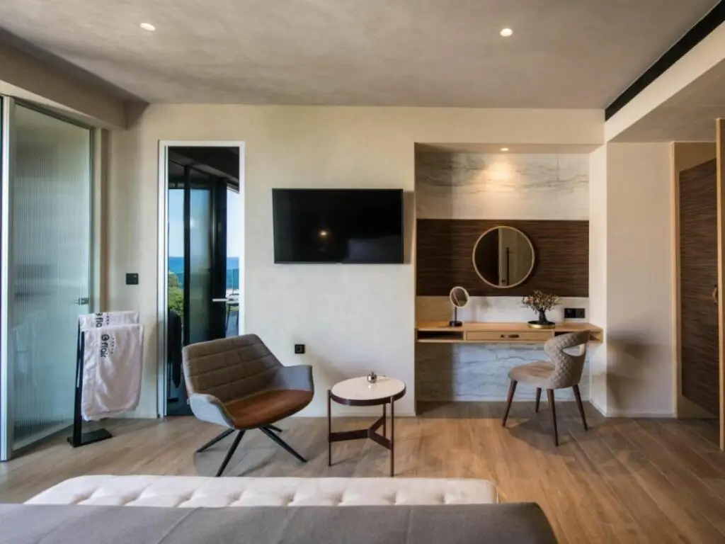 Se você sonhava com Creta, é o lugar certo: todo interior de Chania Flair é perfeito. Depois de um dia de exploração da ilha, não relaxe em seus quartos grandes, decore com móveis de maior qualidade ou não mergulhe na opulência de nossa impressionante suíte com uma vista deslumbrante do mar.