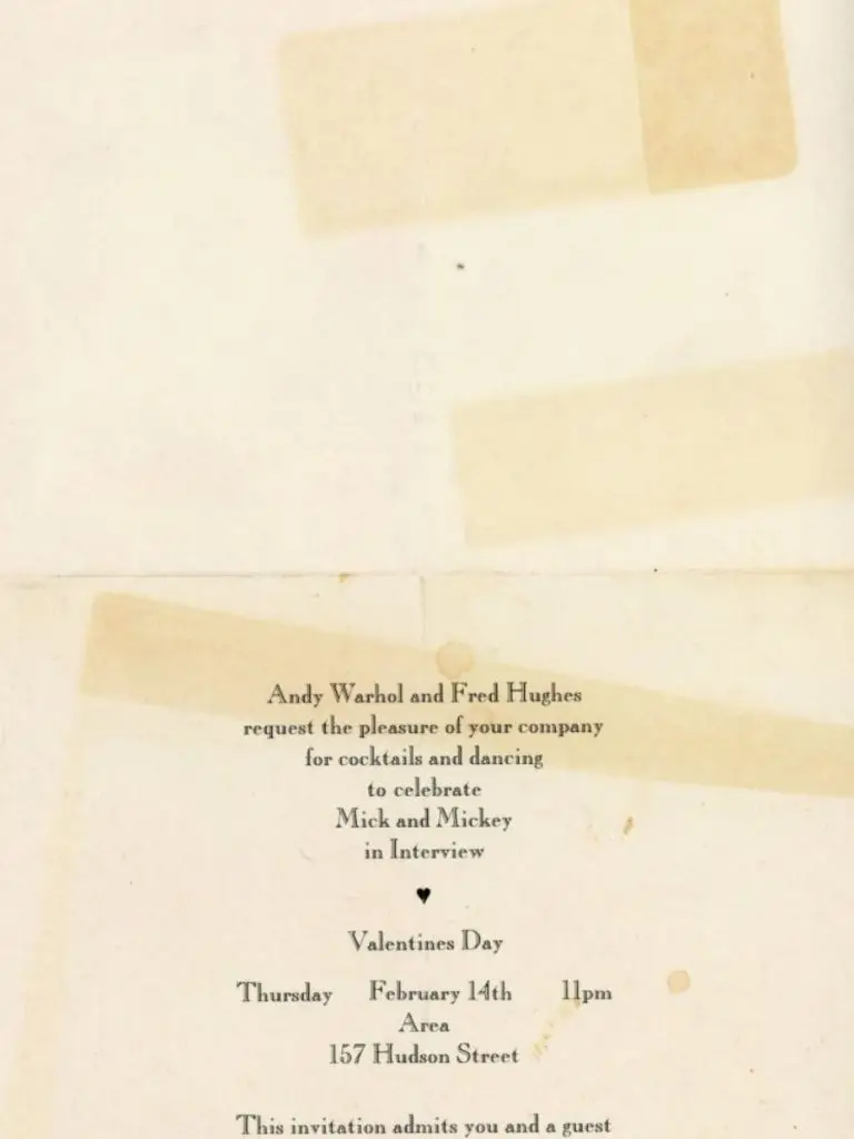 Nesta semana, exploramos os arquivos de cartões de convite noturno memoráveis Com a gentil autorização da Galleria 98 . Quanto às gravações que podem ser vistas abaixo, cartões para celebrações eminentes, incluindo as férias da revista de entrevistas de Andy Warhol e uma festa de aniversário para Holly Woodlawn, a atriz Transgenre, que era famosa como o objeto do clássico de 1972 de Lou Reed Walk on the Wild.