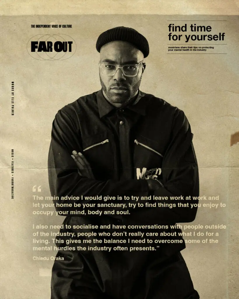 Durante uma visita à conferência Beyond Music em Manchester, pedi uma seleção dos próximos músicos que tocaram no festival enquanto aprendeu a cuidar de sua fonte. Para o artista nascido no capacete Chiadu Oraka, o objetivo é garantir uma separação entre música e relaxamento. O principal conselho que ele daria é deixar seu emprego no trabalho e sair de casa para deixar seu santuário, disse ele.