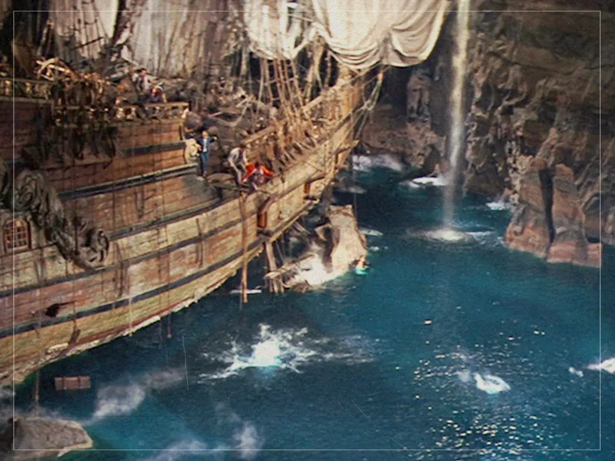 Uma cena com a gangue que foi atacada por um enorme calmar foi cortada no vídeo doméstico do filme. É sempre mencionado em uma das cenas mais recentes de dados e até se tornou um videogame do filme, que deve ter confundido pessoas infinitas. Os cefalópodes de massa não são baratos. Estima -se que essa cena custe mais de 500.000 dólares, o que pode não parecer muito no esquema importante, mas teria sido um golpe duro para a tripulação. Nos anos 80 . Foi restaurado em algumas versões do filme, mas por muito tempo fazia parte do folclore do cinema.