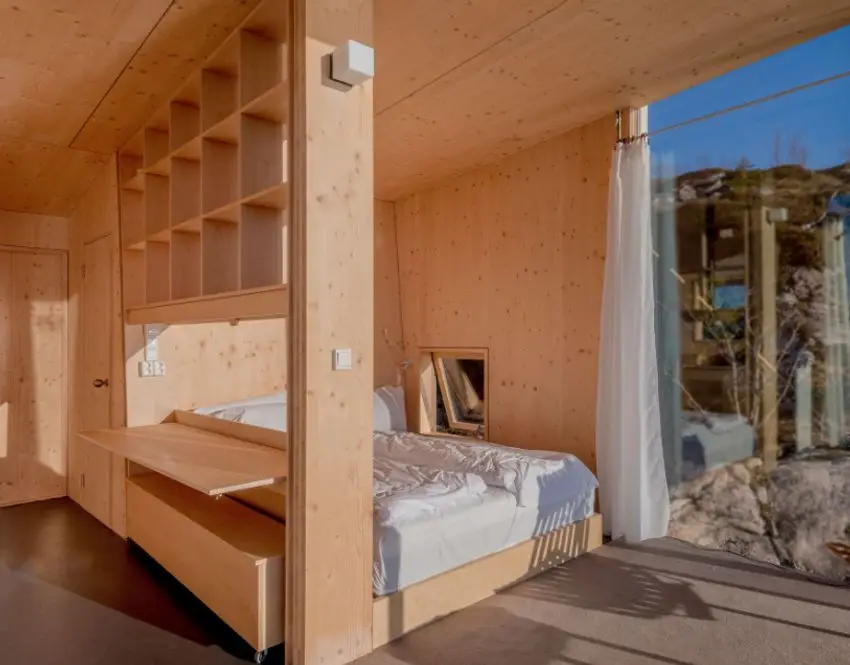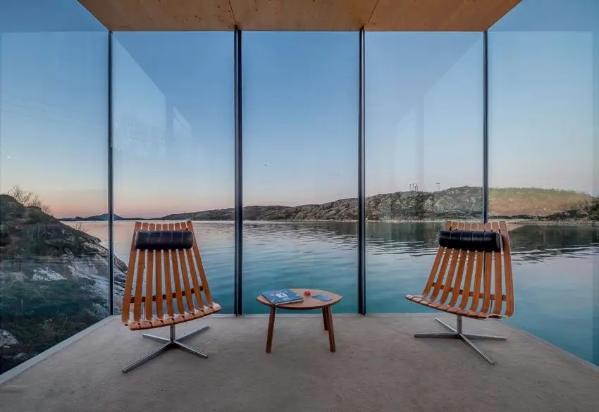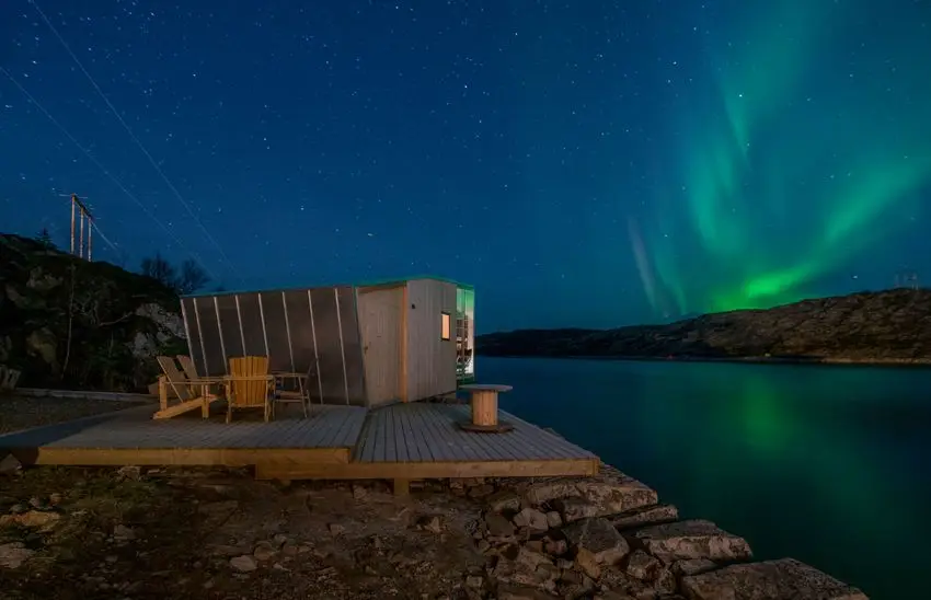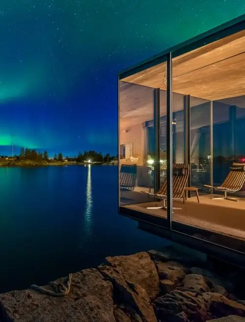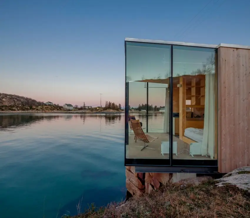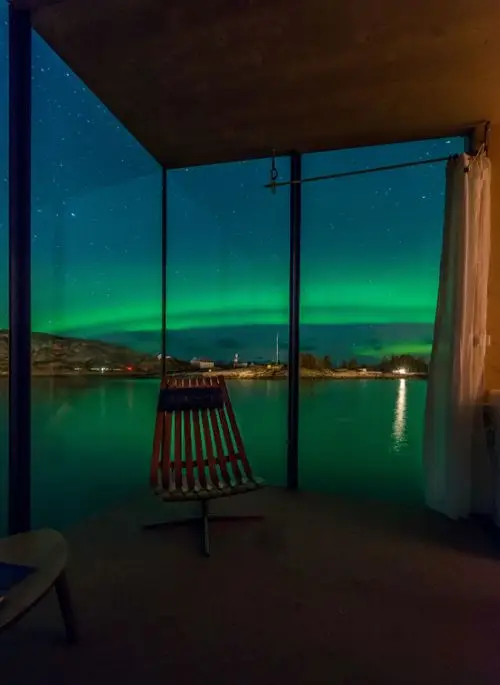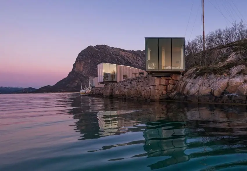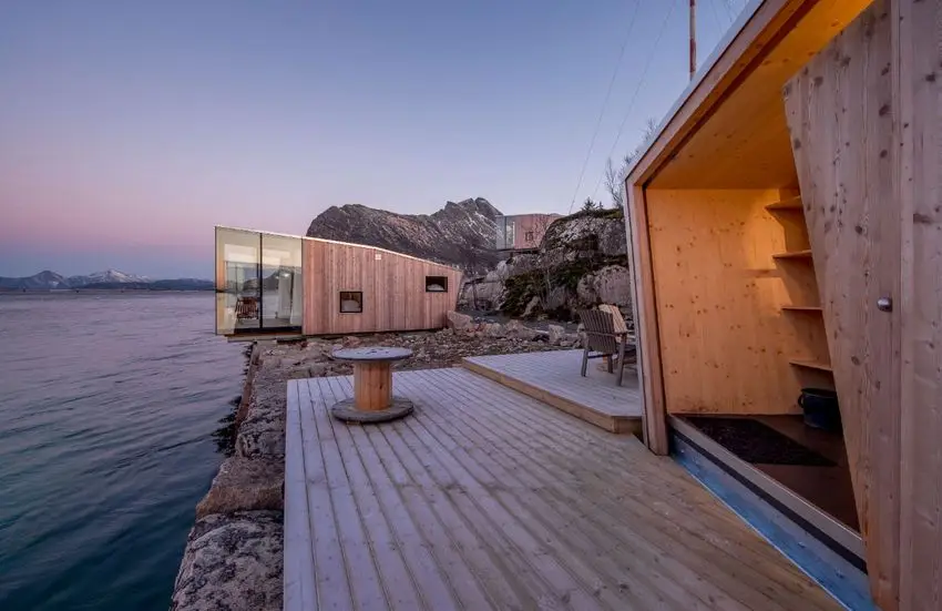O complexo, criado pela Sociedade de Arquitetura de São Arkitetur, oferece uma visão completa da magnífica paisagem com a possibilidade de ver a famosa luz do norte através da fama. O local, que já havia sido usado como uma antiga posição comercial da costa no norte da Noruega, agora contém várias cabines contemporâneas que se elevam do solo e recebem um design minimalista para maior influência, melhorando as vistas panorâmicas. As cabines foram criadas com uma influência mínima na paisagem circundante a ser superada no final de 2021.