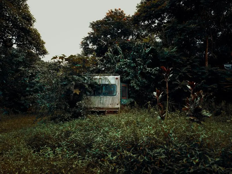 As imagens mostram uma selva verde e verde exuberante que parece viva na vida. Os veículos, por outro lado, parecem pequenos e desnecessariamente limitados pelas videiras e um crescimento excessivo da selva. As cores antinatural dos veículos quebraram lentamente e, por sua vez, parecem retornar às suas condições naturais com laranjas queimadas e a morena do óxido com capuz na espuma verde, que enche as partes vazias dos veículos lançados.
