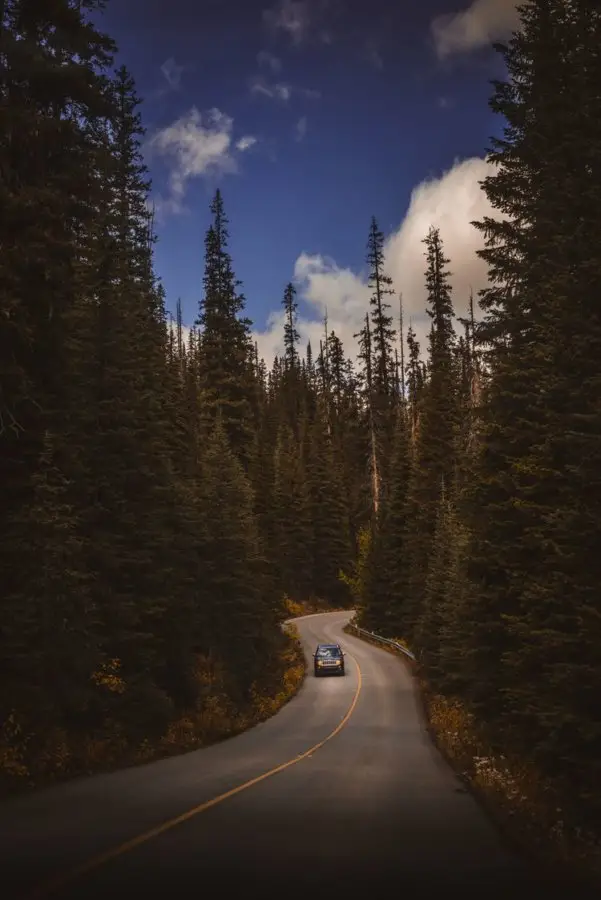 Banff, uma pequena cidade do Parque Nacional Banff, em Alberta, Canadá, é cortada logo após uma viagem ao longo da estrada Transcanada para derivar nas rochas de Albertas.